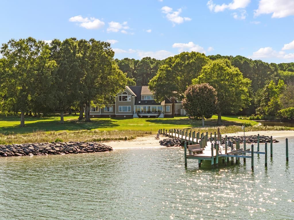 Welcome to 2515 Fleets Bay Road between White Stone and Kilmarnock, a premier waterfront retreat on Indian Creek just off the Chesapeake Bay. Offered for the first time, this custom-built estate showcases exceptional craftsmanship and a seamless connection to its surroundings. Approached via a private drive flanked by stately brick columns, the 16.5-acre grounds deliver unparalleled privacy. Inside, solid oak floors, custom millwork, and designer lighting complement panoramic water views to create an atmosphere of refined coastal elegance. Designed for effortless living and grand entertaining, the chef's kitchen features an expansive island, stone countertops, a Wolf range, dual dishwashers and ovens, and a custom wet bar. The space flows into elegant gathering areas, including a skylit sunroom opening onto the deck. The main-level primary suite occupies its own private wing, joined by three additional ensuite bedrooms and multiple flex spaces. A vaulted theater and game room offers an HD projector, surround sound, a beverage center, and sweeping water vistas. A private guest suite with full kitchen above the four-bay garage and an elevator serving all levels complete the residence. The grounds feature a rare natural white sand beach, private dock with deep-water boat lift, and sailboat-depth Bay access. An outdoor shower and watersports storage make the transition from sea to shore effortless. A detached barn provides a drive-through boat bay, workshop space, and climate-controlled flex space with a full bath and kitchenette. A very rare custom built home with Bay Views!
