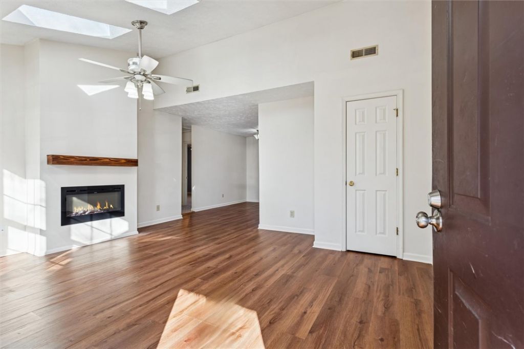 Move-in ready condo with fresh paint and modern updates throughout. New luxury vinyl plank flooring flows through the great room and kitchen, both filled with loads of natural light. A new electric fireplace anchors the great room, creating a comfortable and inviting space. The updated kitchen features upgraded cabinetry, solid-surface countertops, and a newer stove and microwave (2023). The primary suite offers a large walk-in closet and a private bath. The second bedroom includes two generous closets, and a full hall bath features a shower/tub combination. Ideally located near Williamsburg Outlet Malls, Interstate 64, and Sentara Williamsburg Regional Medical Center for easy shopping, dining, and commuting. Floor plan available. FHA and VA approved.